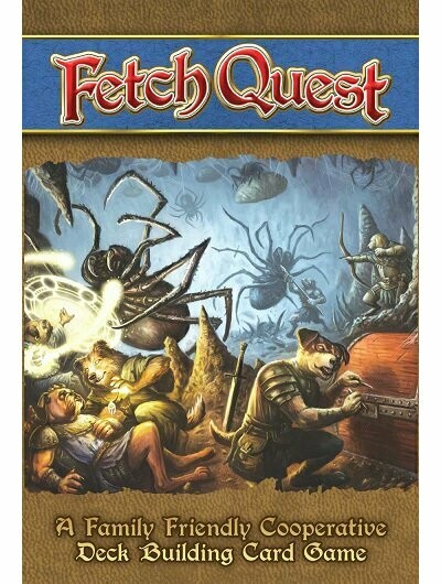 Fetch Quest is a family-friendly, cooperative deck-building game set in the Realms of Pugmire, the world of the Pugmire role-playing game. The components for the game include: 6 dual-sided Pioneer cards; 72 green-backed Fortune cards; 28 red-backed Challenge cards; 4 Mission cards. Each player represents a pioneer, one of six adventurous dogs on a dangerous quest. The pioneers work together to overcome dangerous challenges and resolve missions. Once the missions are resolved, the quest is finished, and the players win the game!